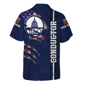 Railspirit Personalized Baltimore and Ohio Railroad Hawaiian Shirt USA Flag Claw Art with Custom Job B&O Train Shirt