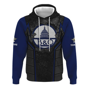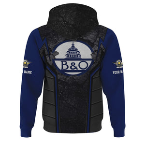 Railspirit Personalized Baltimore and Ohio Railroad Hoodie Cracked Metal Design B&O Train Zip Up Hoodie for Rail Enthusiasts