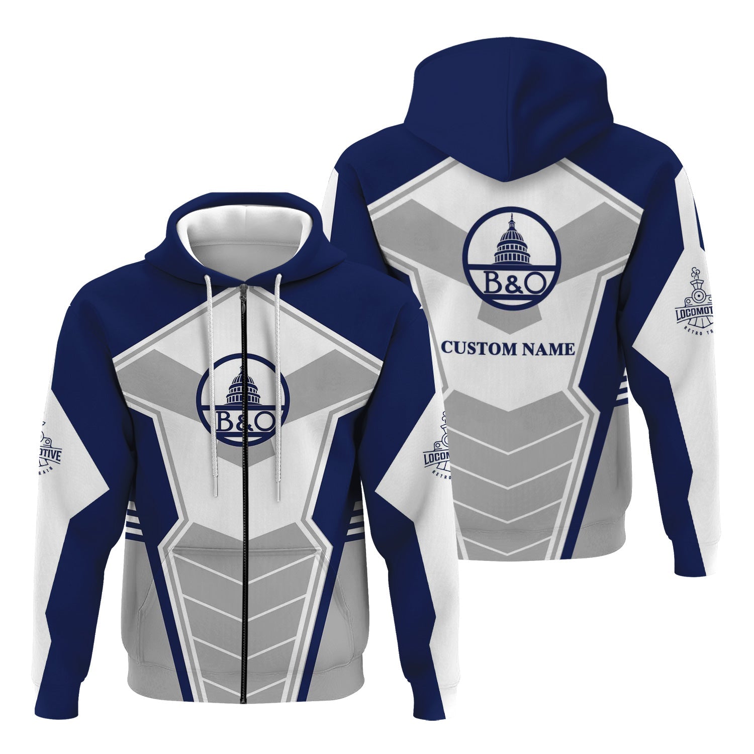 Railspirit Personalized Baltimore and Ohio Railroad Hoodie Engine-Inspired Style B&O Train Zip Up Hoodie for Railroad Fanatic