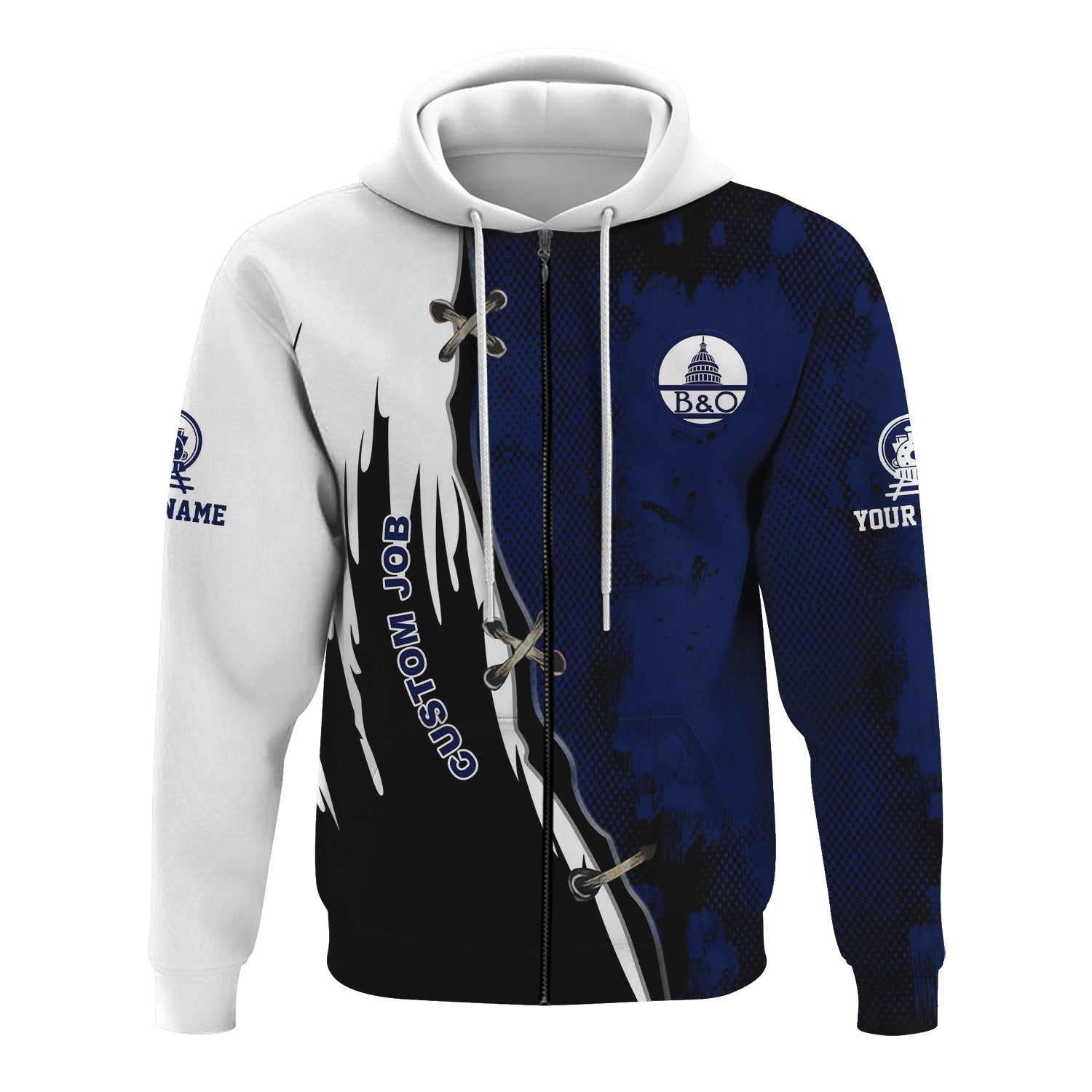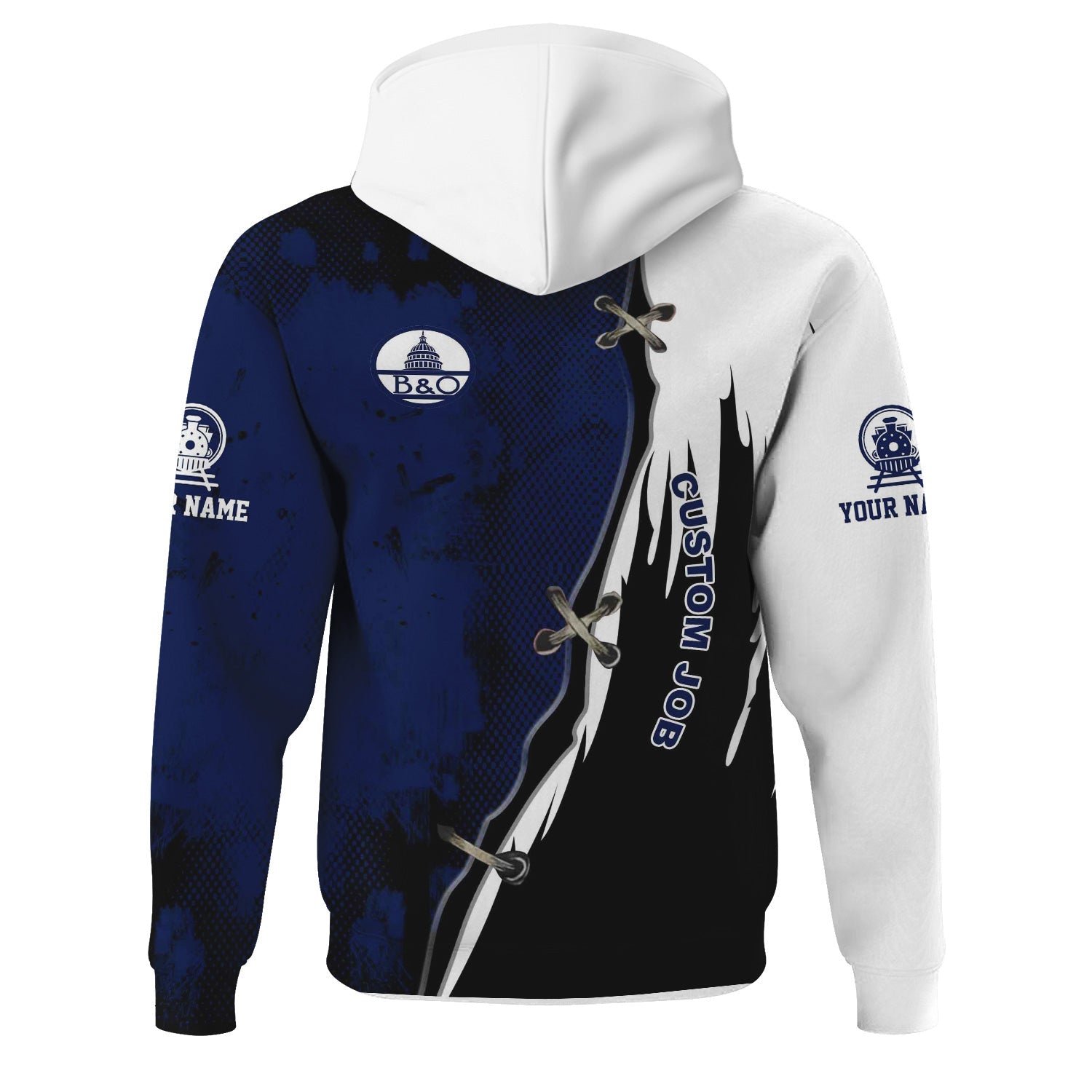 Railspirit Personalized Baltimore and Ohio Railroad Hoodie Retro Stitches Design with Custom Position B&O Train Zip Up Hoodie