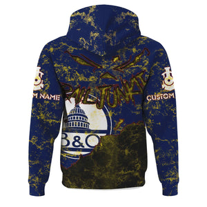 Railspirit Personalized Baltimore and Ohio Railroad Hoodie Torn Graphic Style B&O Train Zip Up Hoodie For Rail Junkie