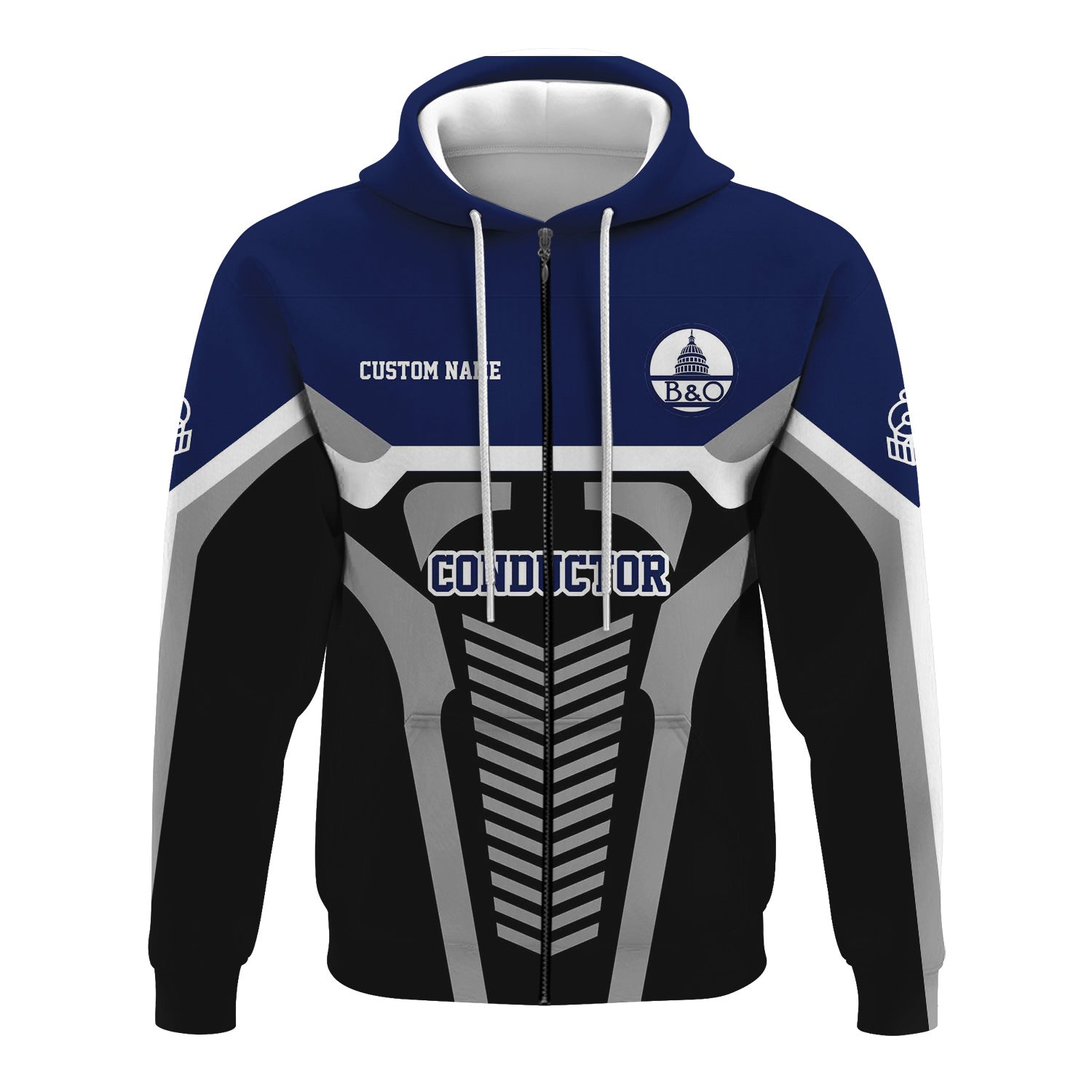 Railspirit Personalized Baltimore and Ohio Railroad Hoodie Track-Inspired with Custom Job Position B&O Train Zip Up Hoodie