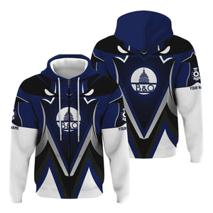 Railspirit Personalized Baltimore and Ohio Railroad Hoodie Vibrant Graphic Pattern B&O Zip Up Hoodie For Train Enthusiasts