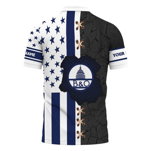 Railspirit Personalized Baltimore and Ohio Railroad Polo Shirt American Flag with Crack Effect B&O Train Shirt