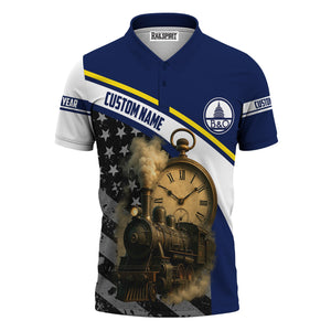 Railspirit Personalized Baltimore and Ohio Railroad Polo Shirt Classic Steam Engine With Retro Pocket Watch B&O Shirt All Over Print