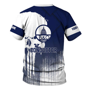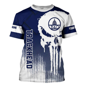 Railspirit Personalized Baltimore and Ohio Railroad T-Shirt Skull Design with Custom Job B&O Train Shirt for Trackhead Crew