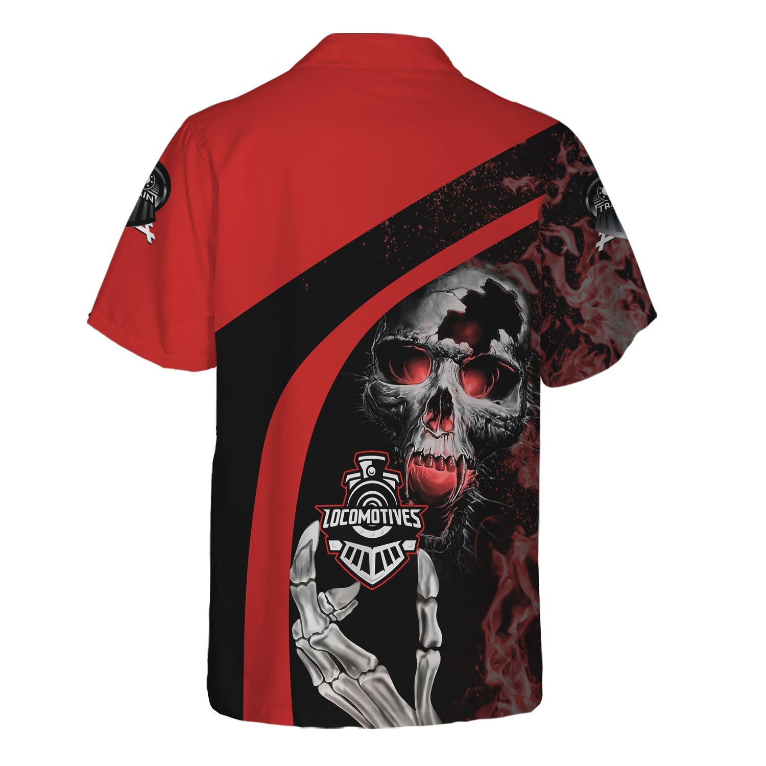 Railspirit Personalized Bangor And Aroostook Railroad Hawaiian Shirt Flame Skull Design Train Shirt for Locomotive Fans