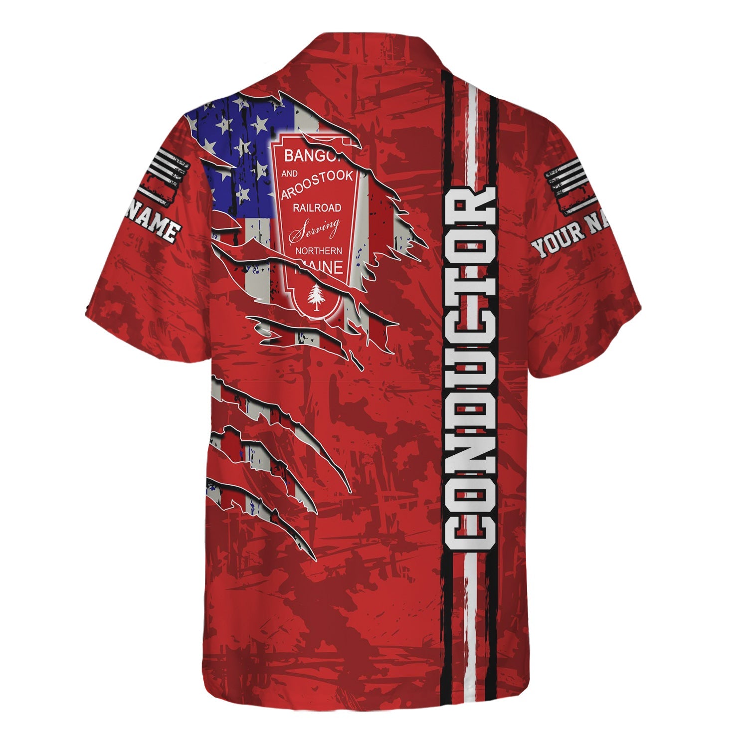 Railspirit Personalized Bangor And Aroostook Railroad Hawaiian Shirt USA Flag Claw Art with Custom Job Train Shirt