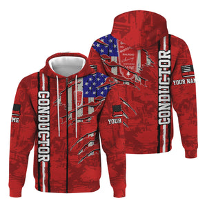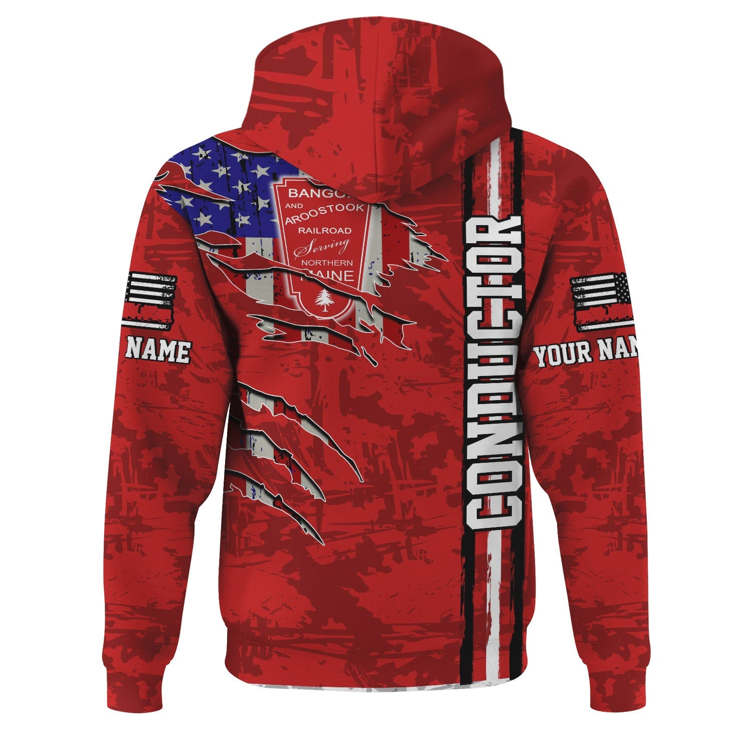 Railspirit Personalized Bangor And Aroostook Railroad Hoodie USA Flag Claw Art with Custom Job Train Zip Up Hoodie