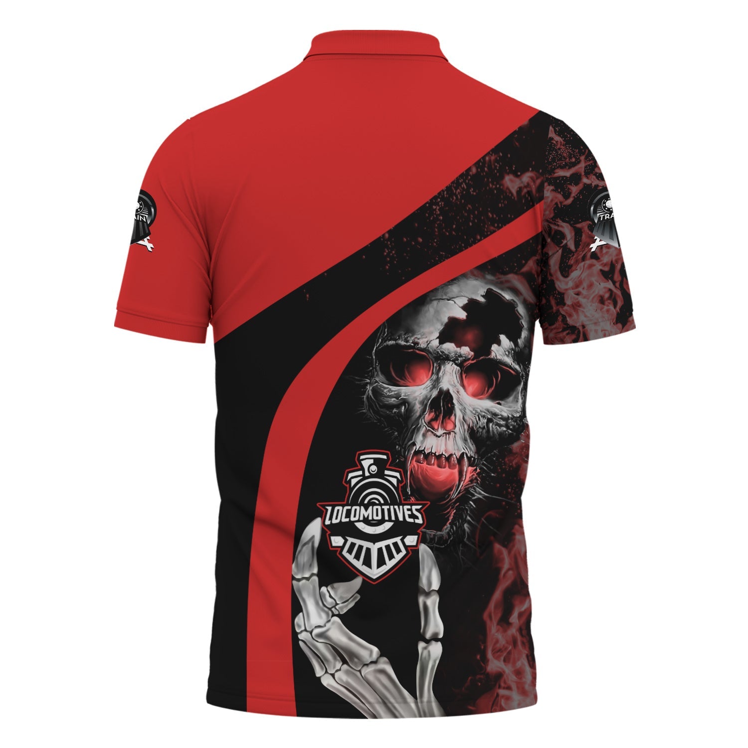 Railspirit Personalized Bangor And Aroostook Railroad Polo Shirt Flame Skull Design Train Shirt for Locomotive Fans
