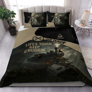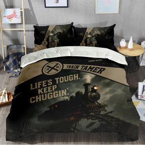 Railspirit Personalized Bedding Set Life's Tough Keep Chuggin' Vintage Train Bedding Set for Train Tamer
