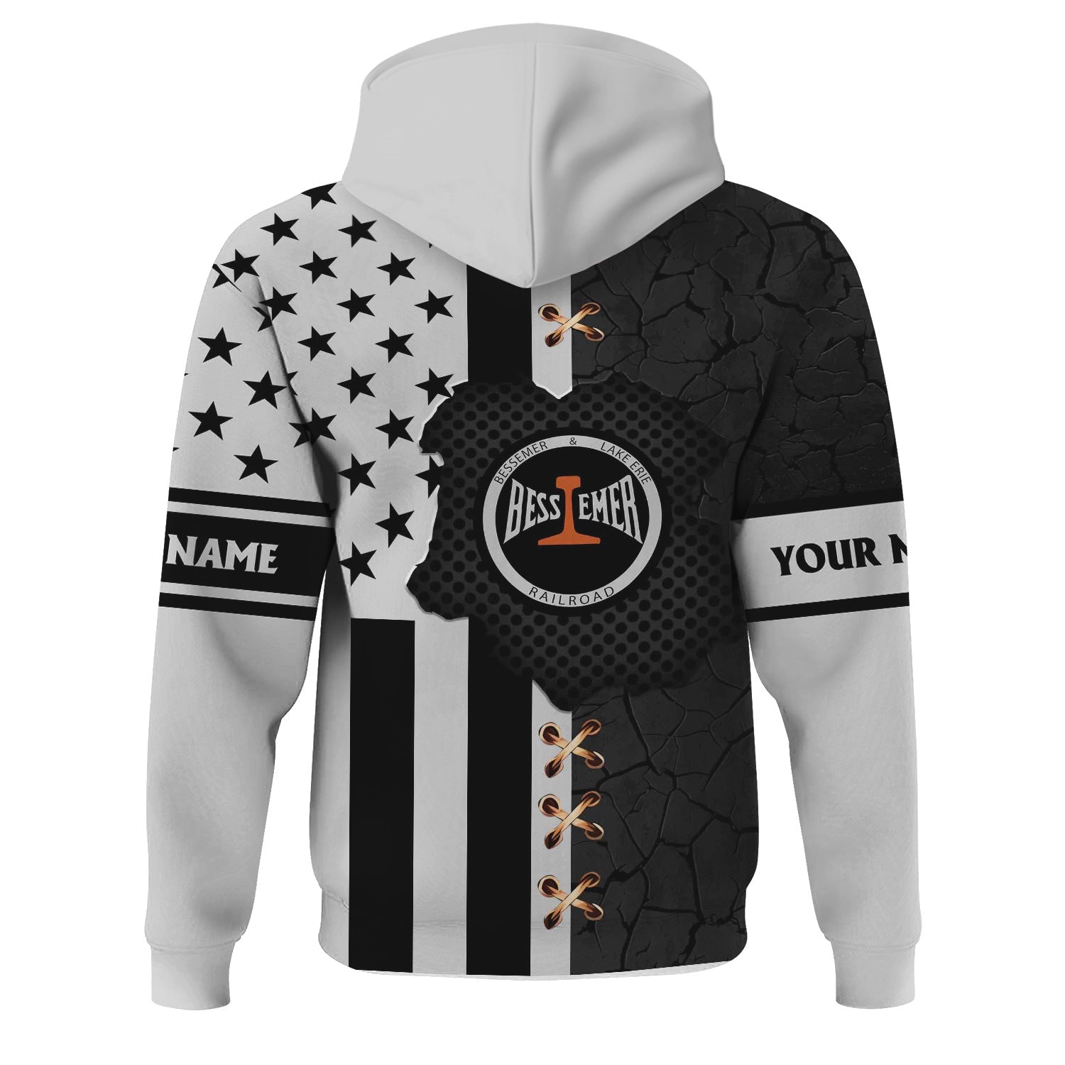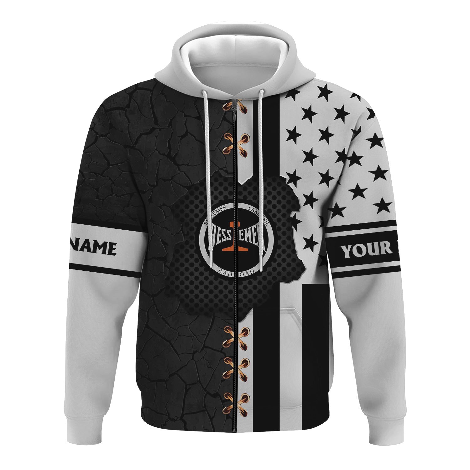 Railspirit Personalized Bessemer And Lake Erie Railroad Hoodie American Flag with Crack Effect Train Zip Up Hoodie