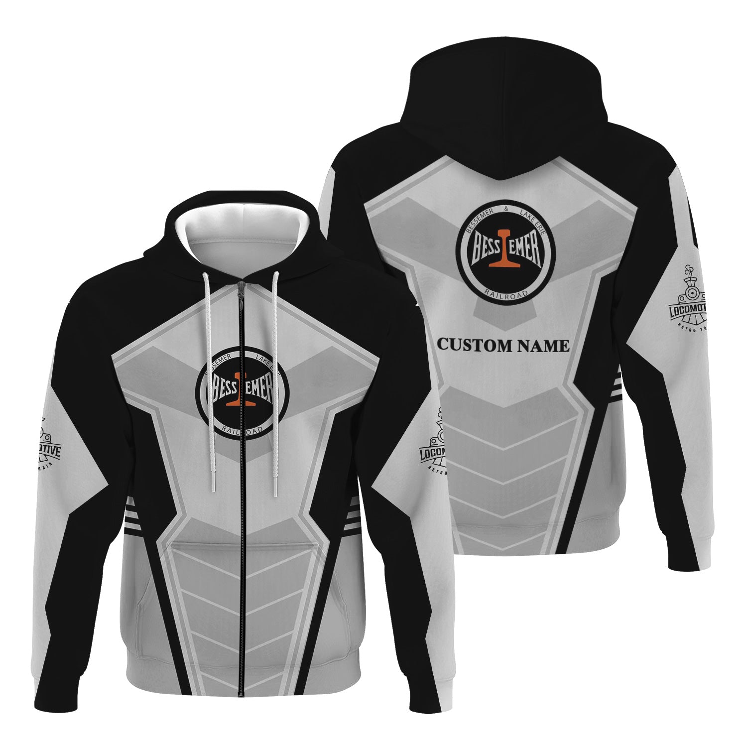 Railspirit Personalized Bessemer And Lake Erie Railroad Hoodie Engine-Inspired Style Train Zip Up Hoodie for Railroad Fanatic