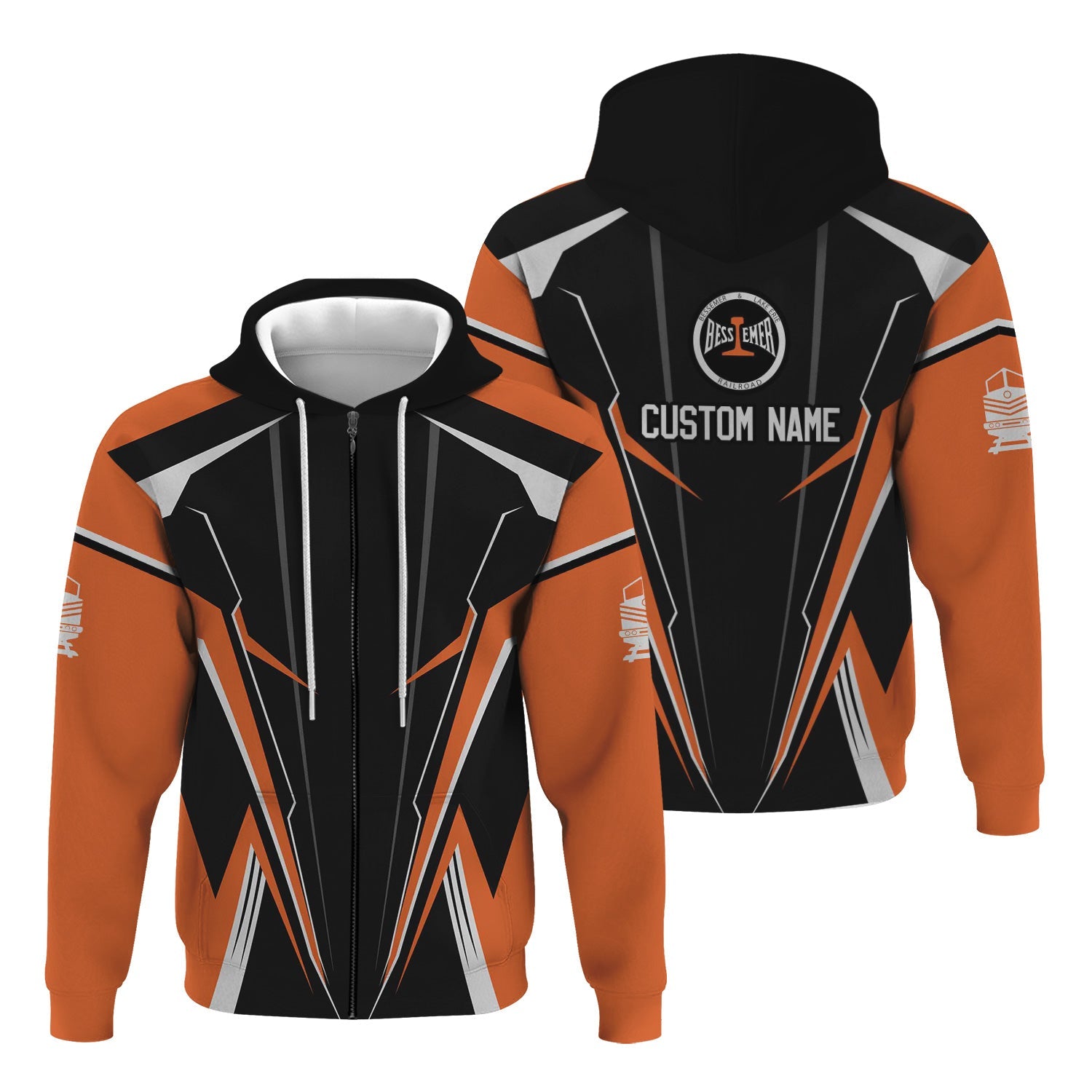 Railspirit Personalized Bessemer And Lake Erie Railroad Hoodie Lightning-Edge Design Train Zip Up Hoodie For Railroad Lovers