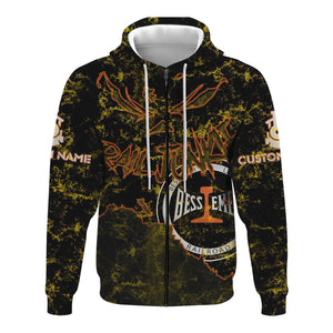 Railspirit Personalized Bessemer And Lake Erie Railroad Hoodie Torn Graphic Style Train Zip Up Hoodie For Rail Junkie