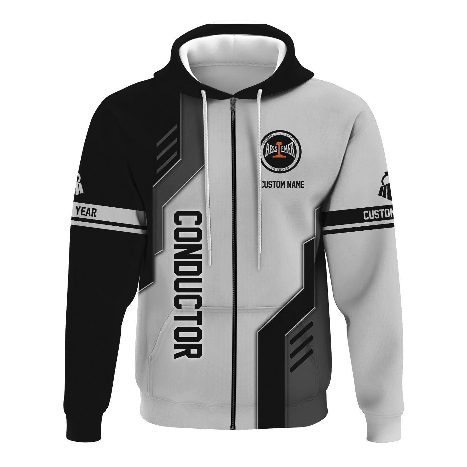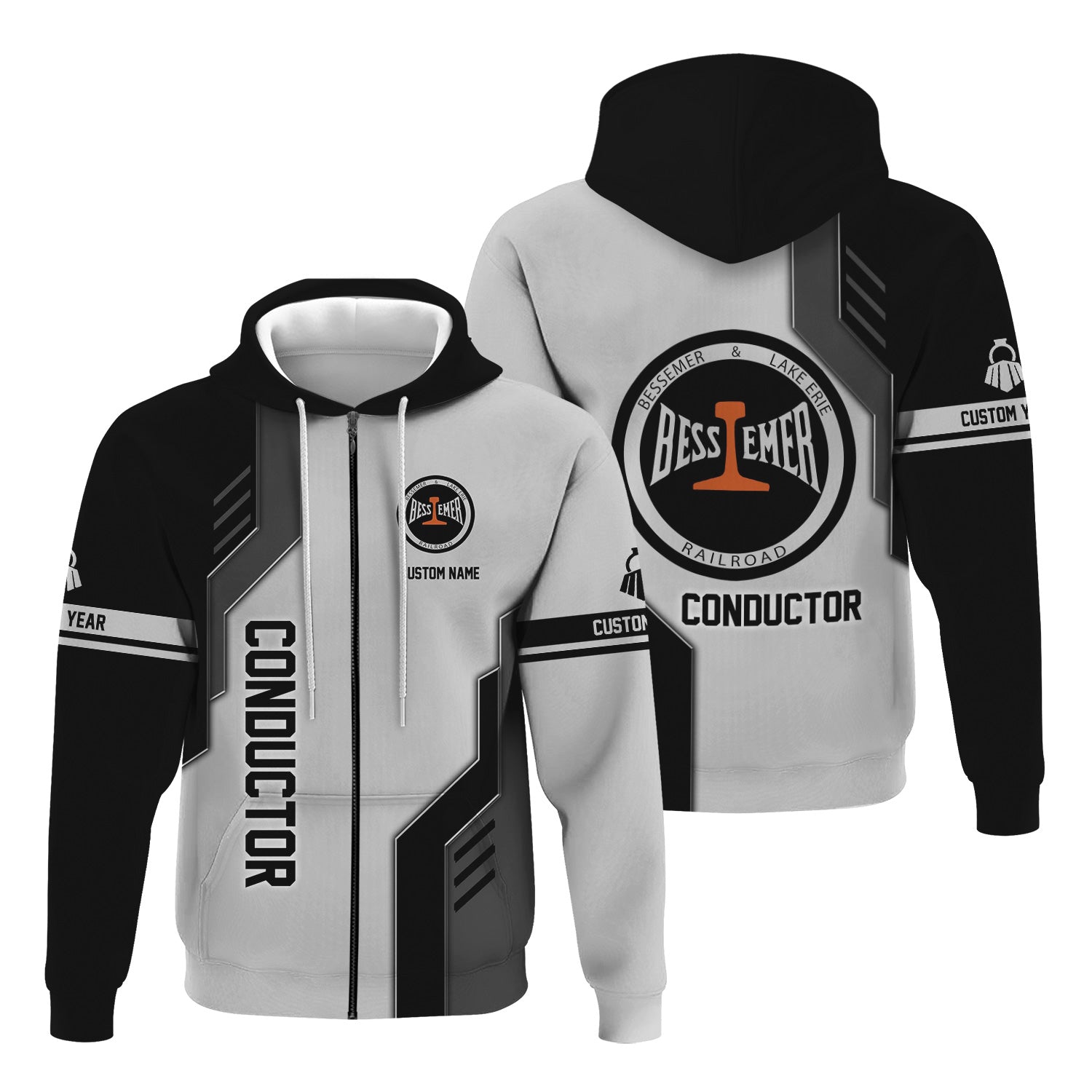 Railspirit Personalized Bessemer And Lake Erie Railroad Hoodie Unique Railway Style with Custom Job Train Zip Up Hoodie