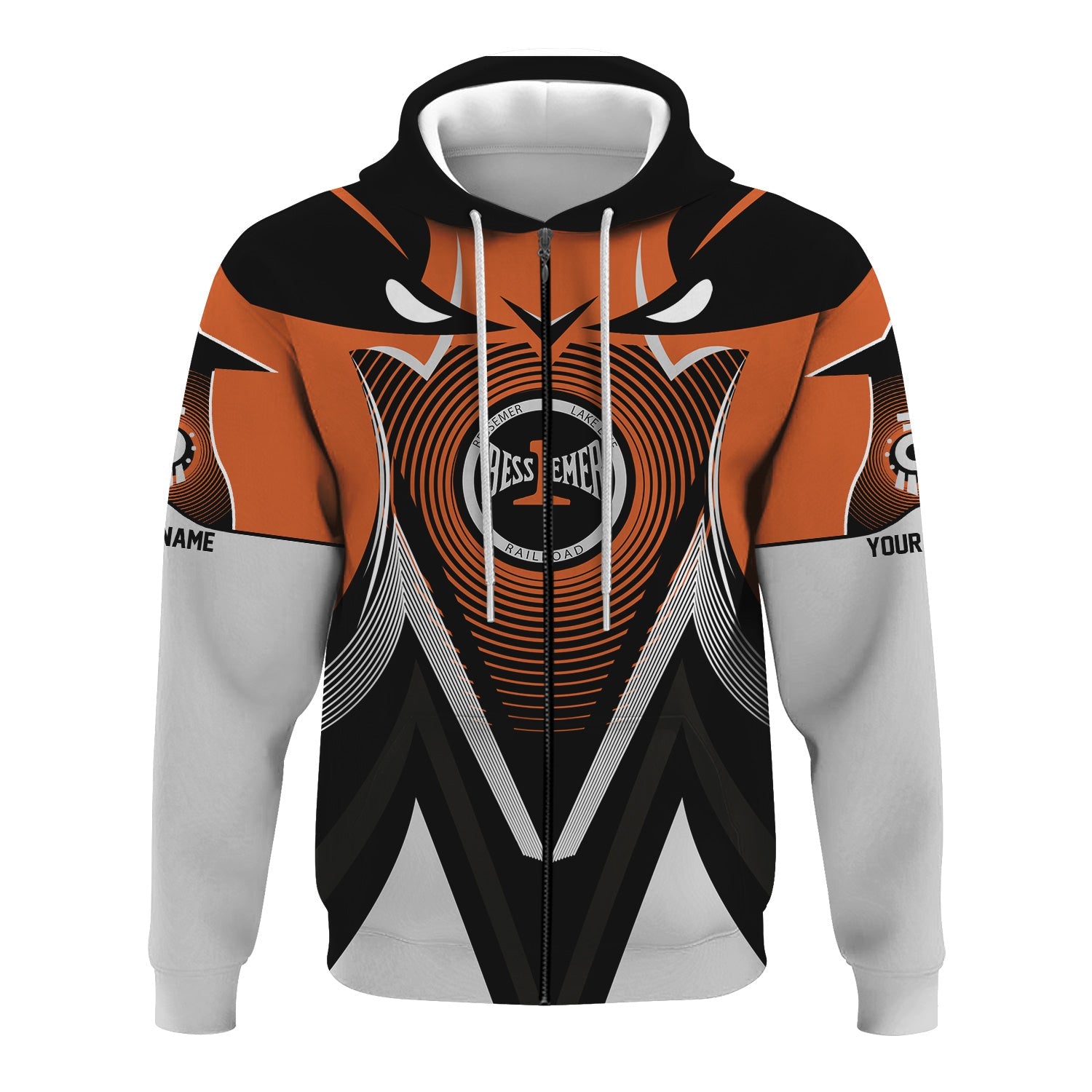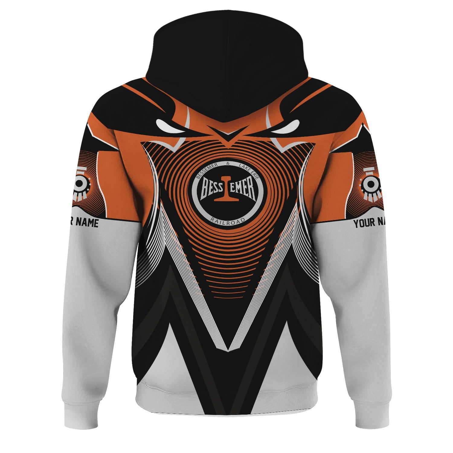 Railspirit Personalized Bessemer And Lake Erie Railroad Hoodie Vibrant Graphic Pattern Zip Up Hoodie For Train Enthusiasts