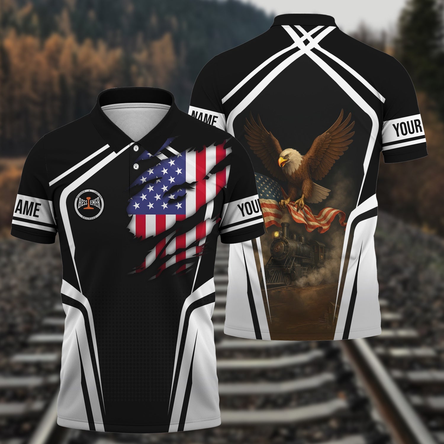 Railspirit Personalized Bessemer And Lake Erie Railroad Polo Shirt American Eagle Vintage Train Shirt