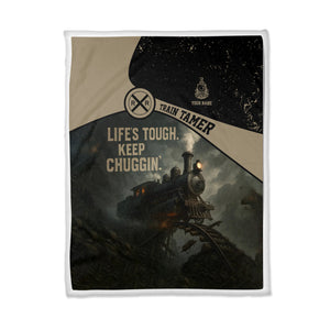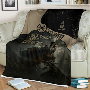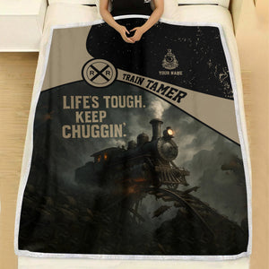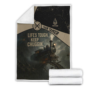 Railspirit Personalized Blanket Life's Tough Keep Chuggin' Vintage Train Blanket for Train Tamer