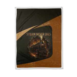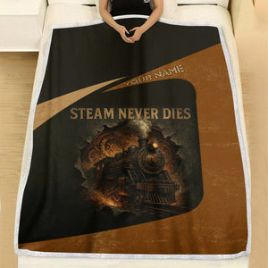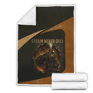 Railspirit Personalized Blanket Steam Never Dies Vintage Train Blanket for Railroad Fanatic