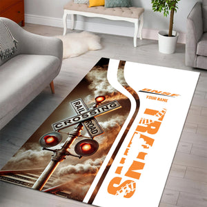 Railspirit Personalized BNSF Railway Area Rug Railroad Crossing Sign Rug All Over Print