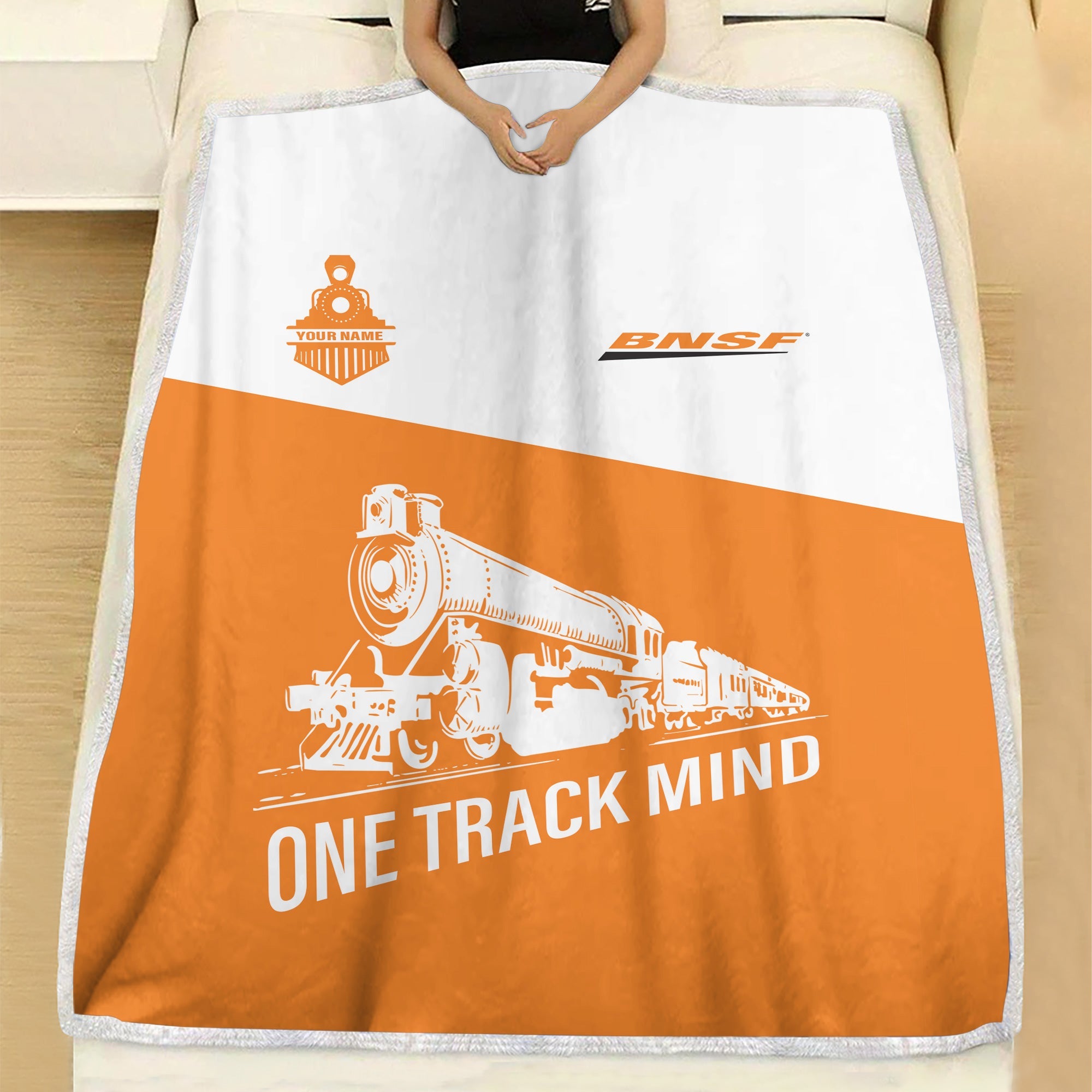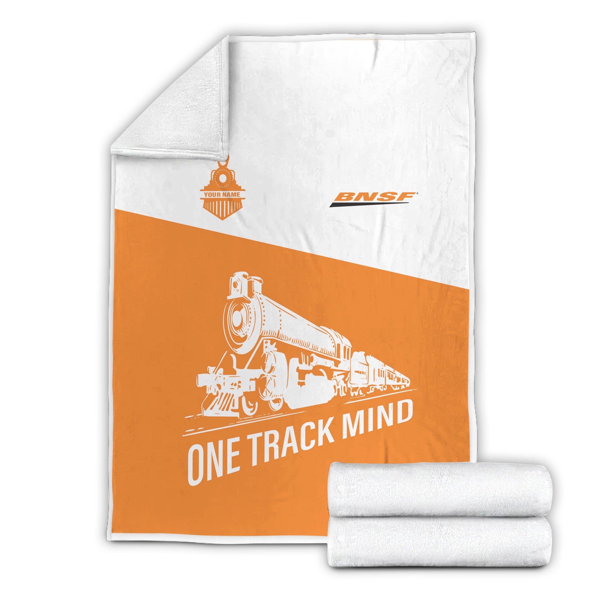 Railspirit Personalized BNSF Railway Blanket One Track Mind Train Blanket Gift Idea For Train Lover