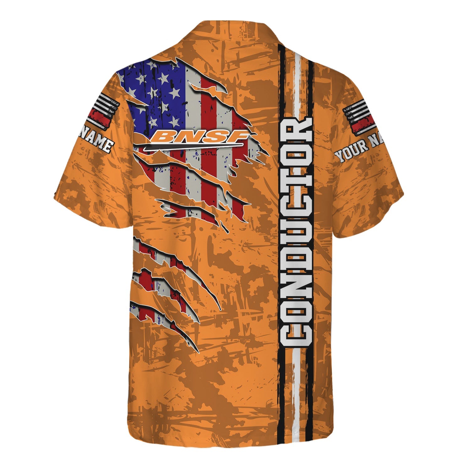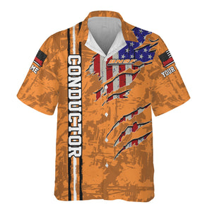 Railspirit Personalized BNSF Railway Hawaiian Shirt USA Flag Claw Art with Custom Job Train Shirt