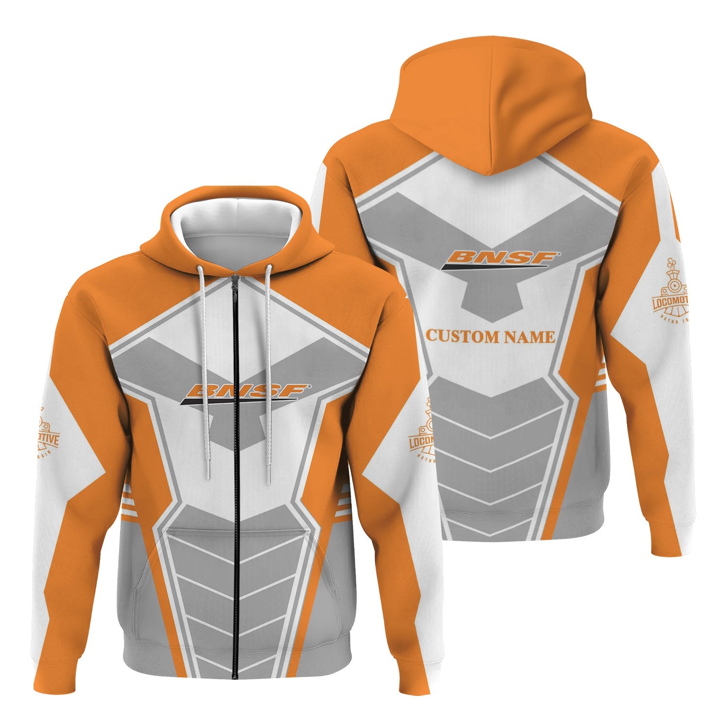 Railspirit Personalized BNSF Railway Hoodie Engine-Inspired Style Train Zip Up Hoodie for Railroad Fanatic