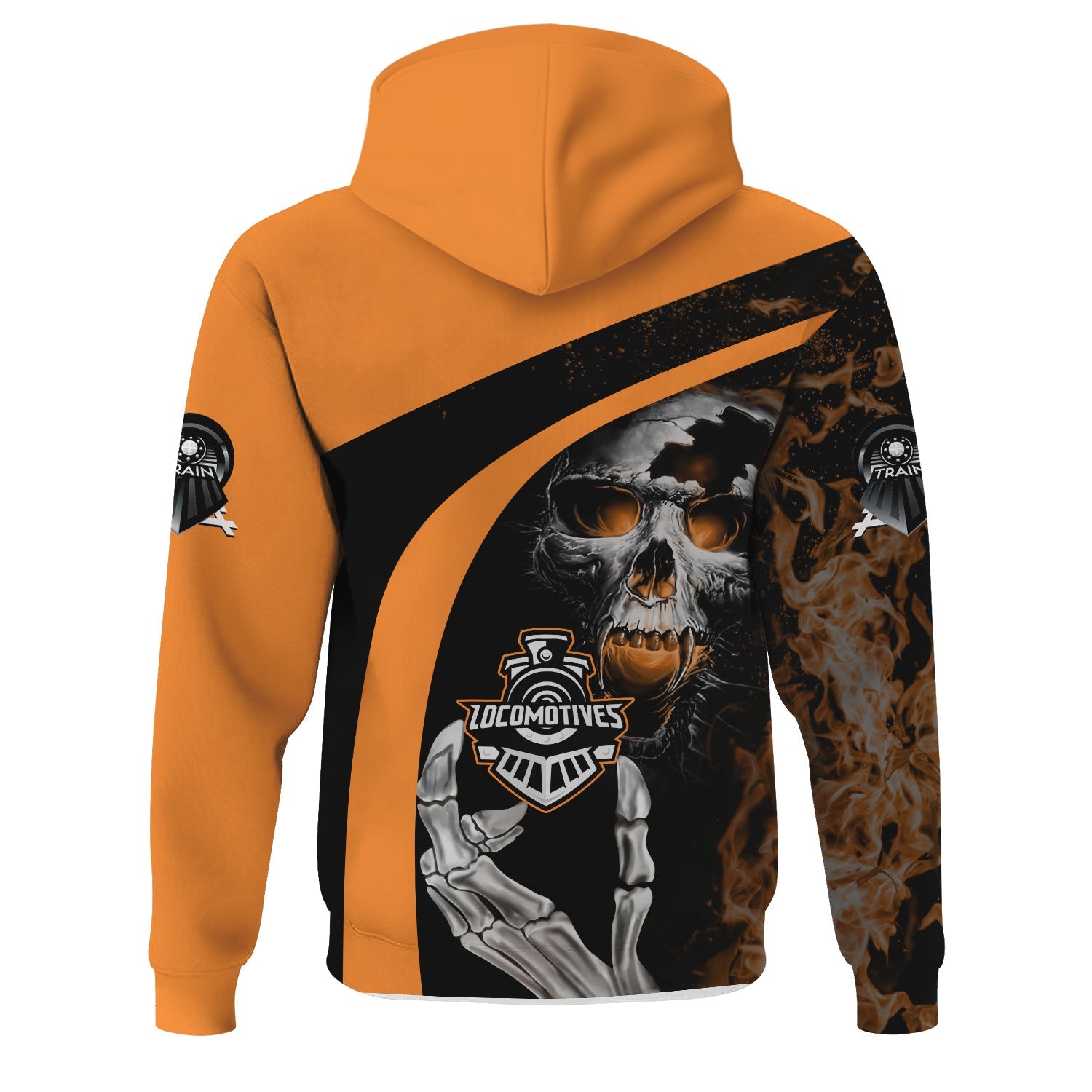 Railspirit Personalized BNSF Railway Hoodie Flame Skull Design Train Zip Up Hoodie for Locomotive Fans