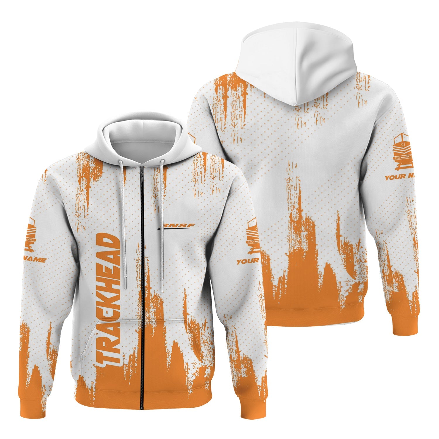 Railspirit Personalized BNSF Railway Hoodie Paint Impact Design Train Zip Up Hoodie for Trackhead