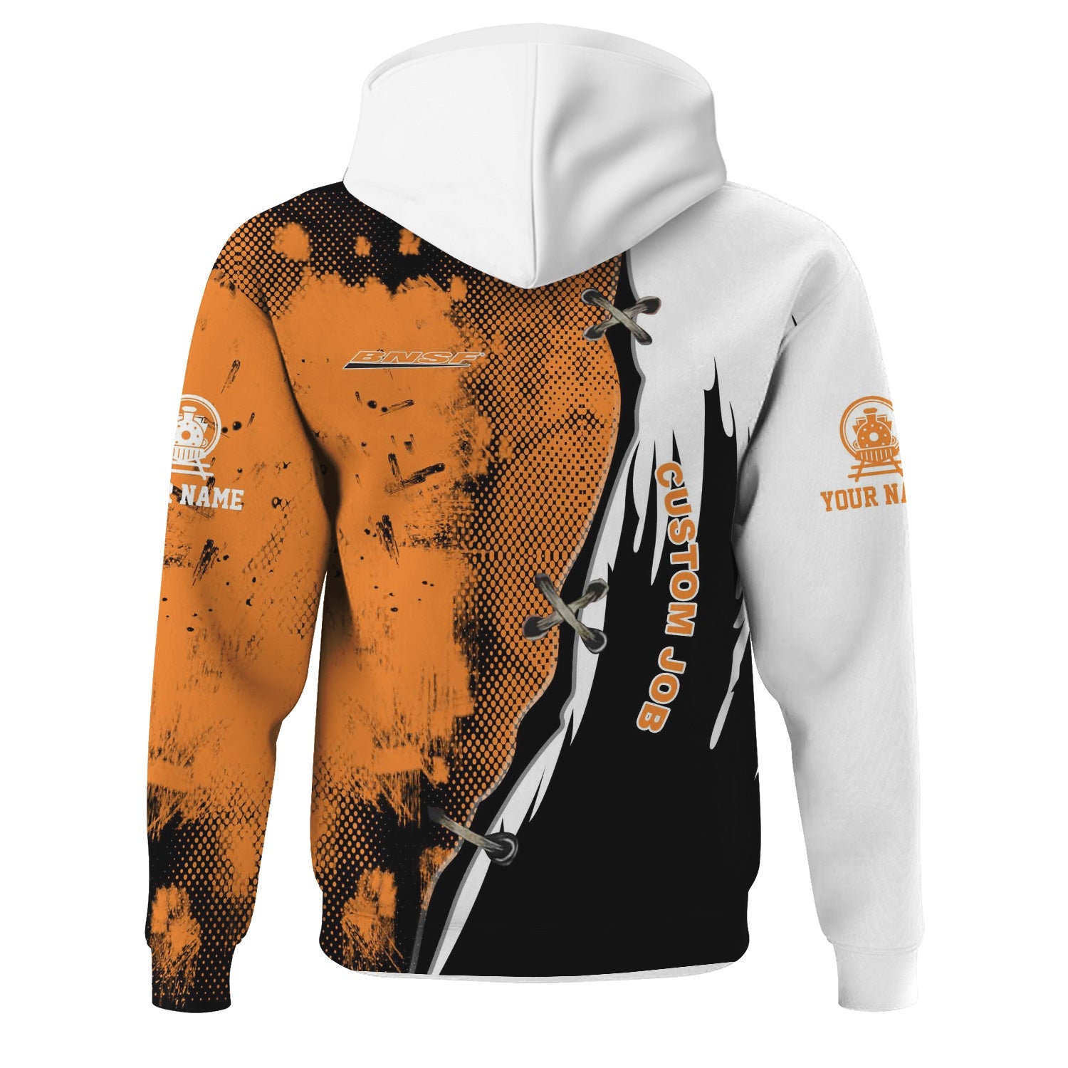 Railspirit Personalized BNSF Railway Hoodie Retro Stitches Design with Custom Position Train Zip Up Hoodie