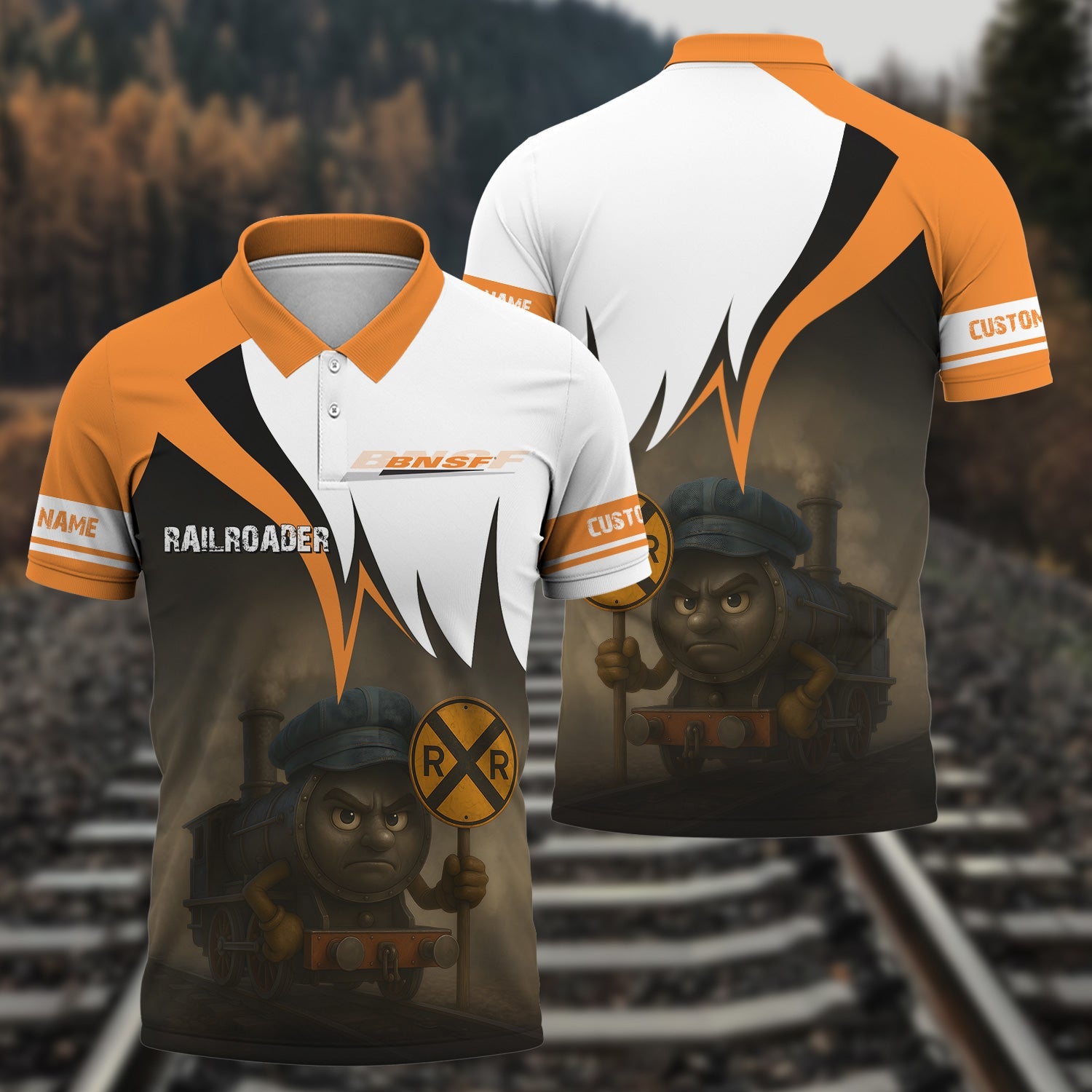 Railspirit Personalized BNSF Railway Polo Shirt Angry Train Polo Shirt Gift Idea For Train Lover