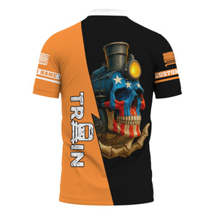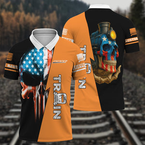 Railspirit Personalized BNSF Railway Polo Shirt Train Skull American Flag Shirt All Over Print