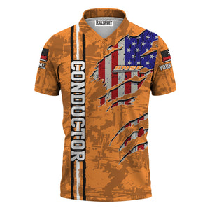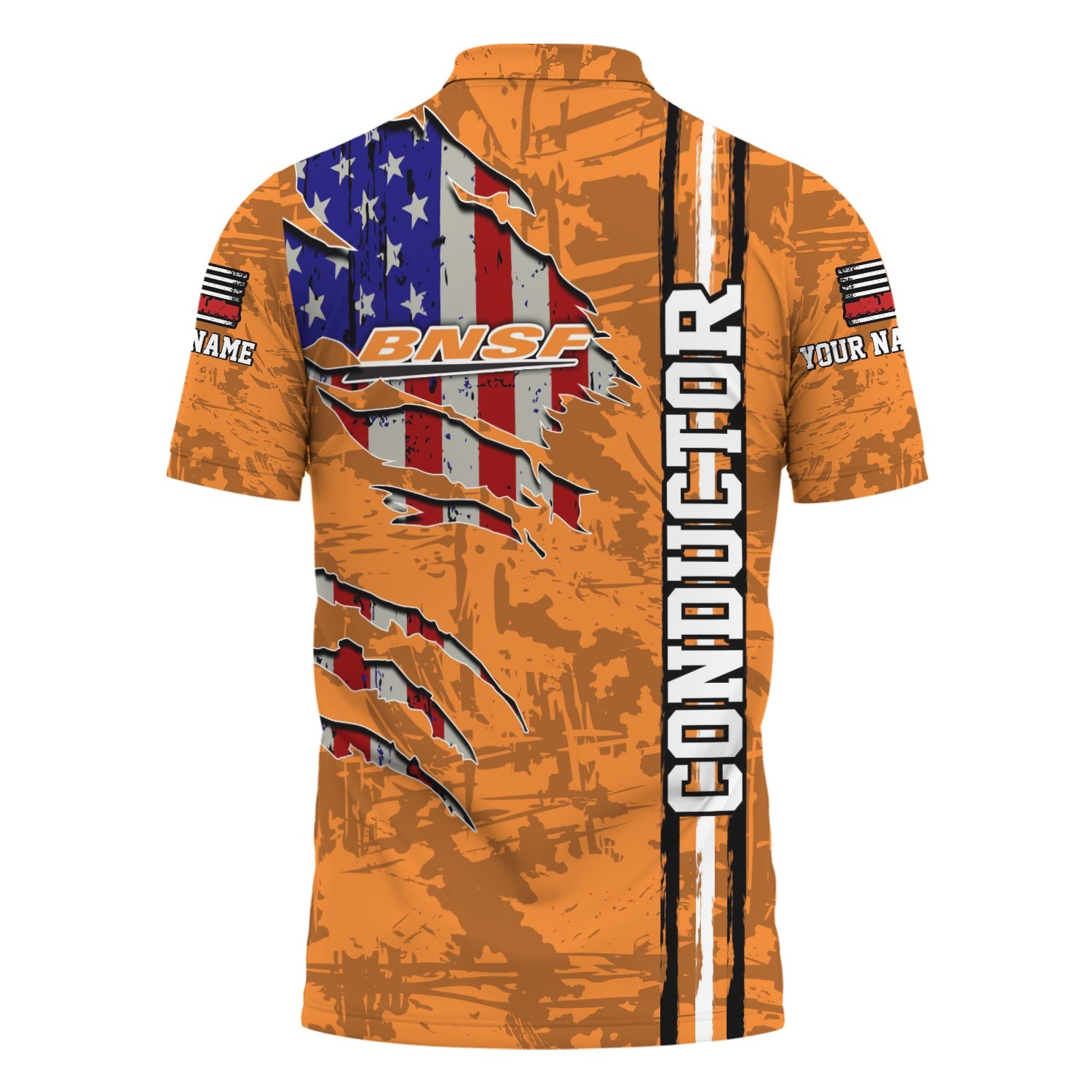 Railspirit Personalized BNSF Railway Polo Shirt USA Flag Claw Art with Custom Job Train Shirt