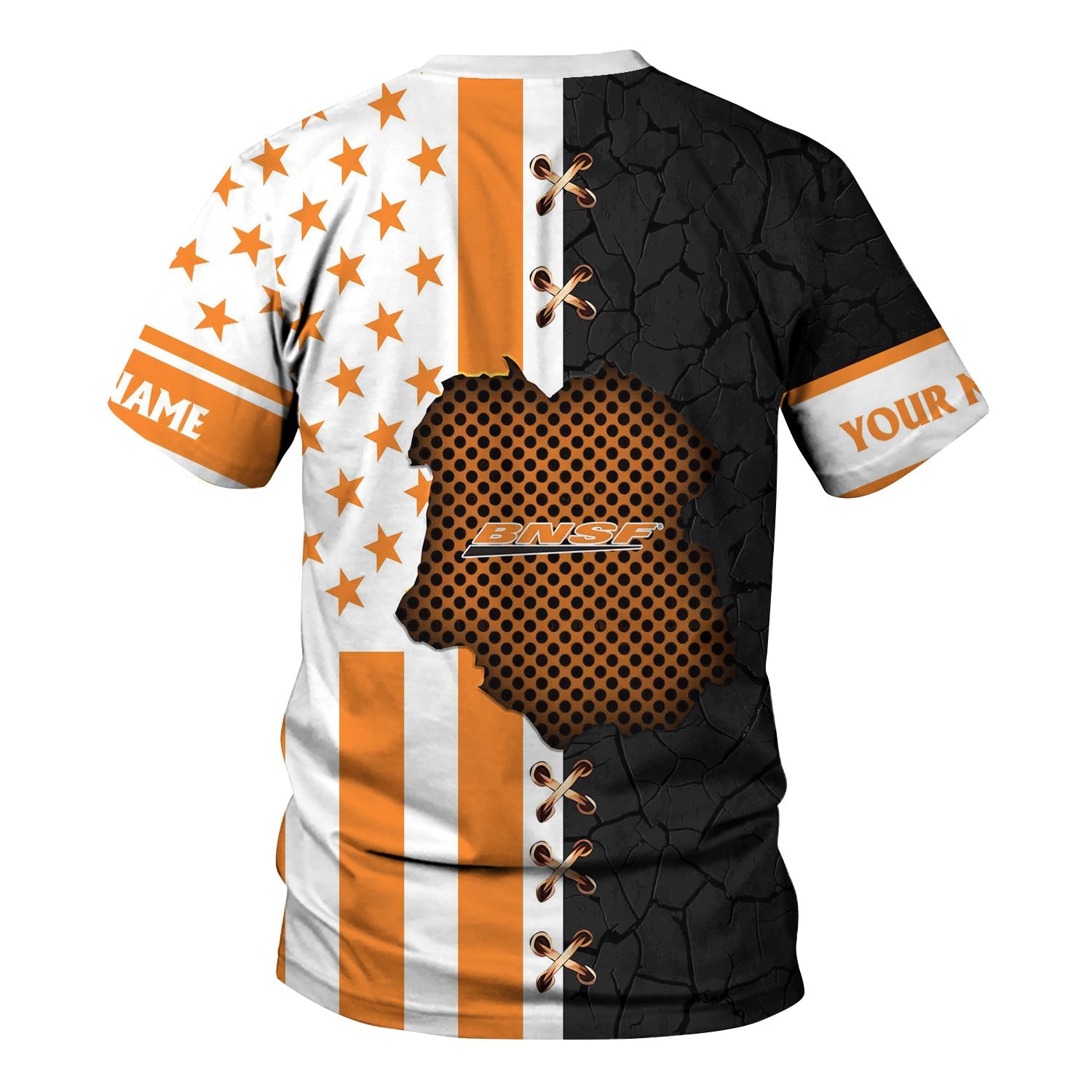 Railspirit Personalized BNSF Railway T-Shirt American Flag with Crack Effect Train Shirt