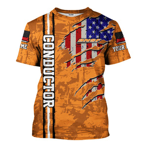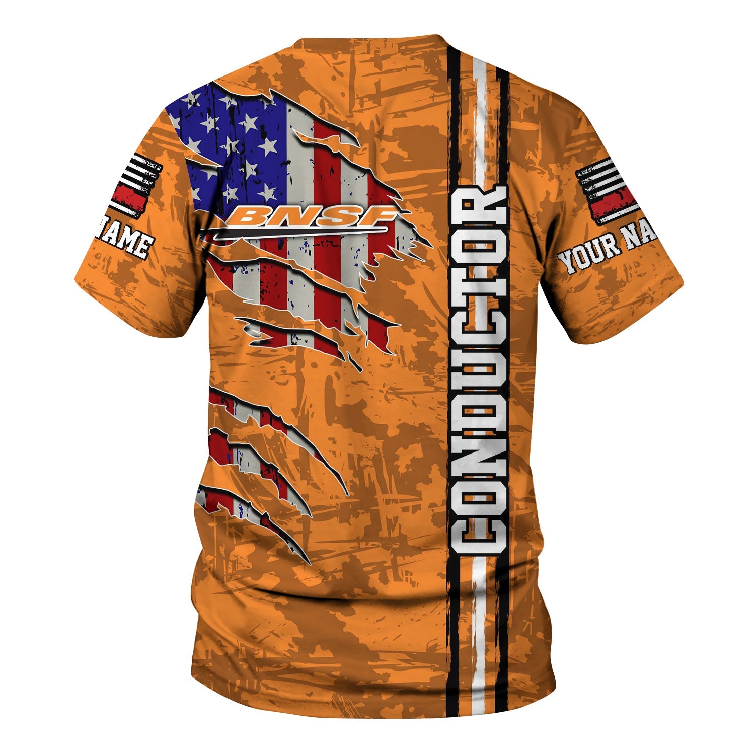 Railspirit Personalized BNSF Railway T-Shirt USA Flag Claw Art with Custom Job Train Shirt