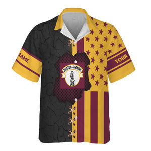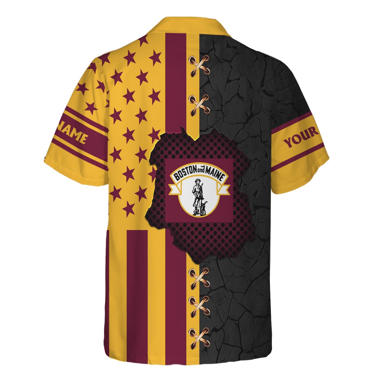 Railspirit Personalized Boston and Maine Railroad Hawaiian Shirt American Flag with Crack Effect Train Shirt