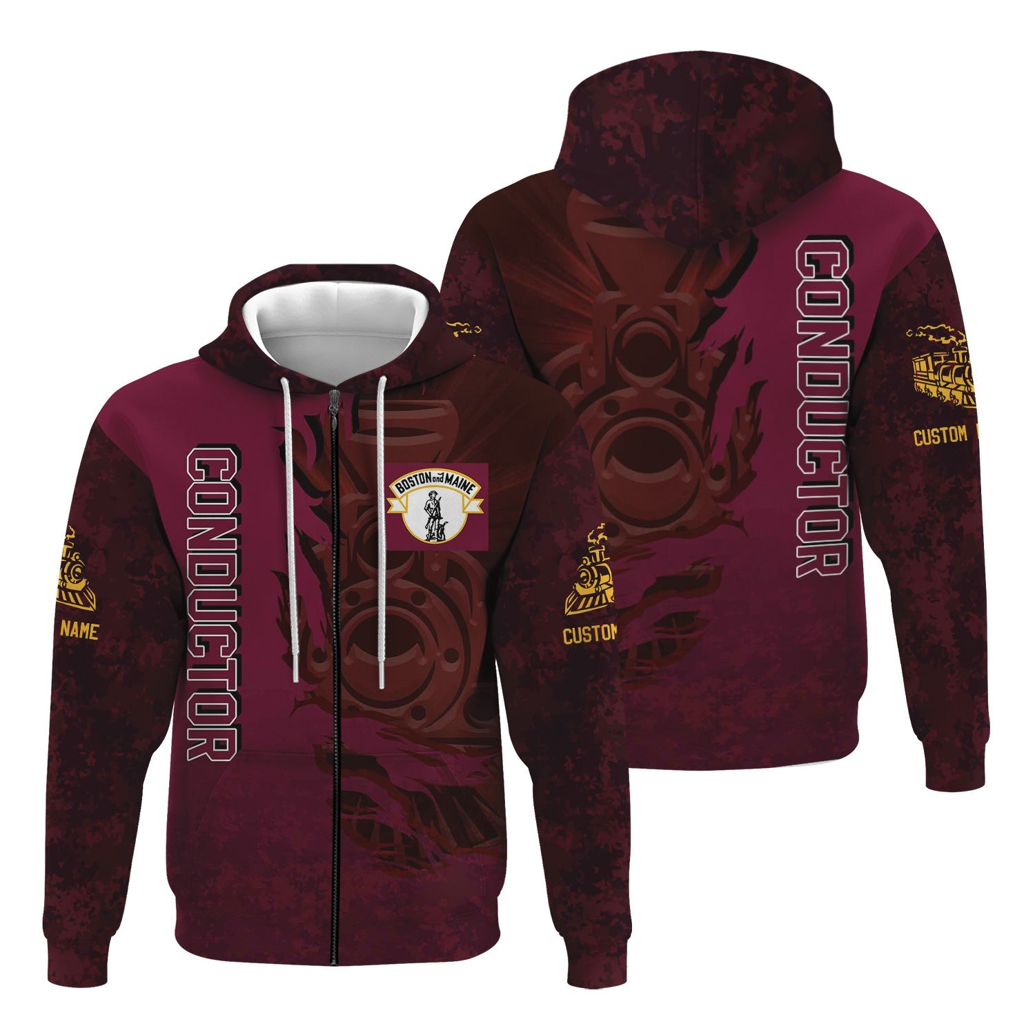 Railspirit Personalized Boston and Maine Railroad Hoodie Blazing Style with Custom Position Train Zip Up Hoodie
