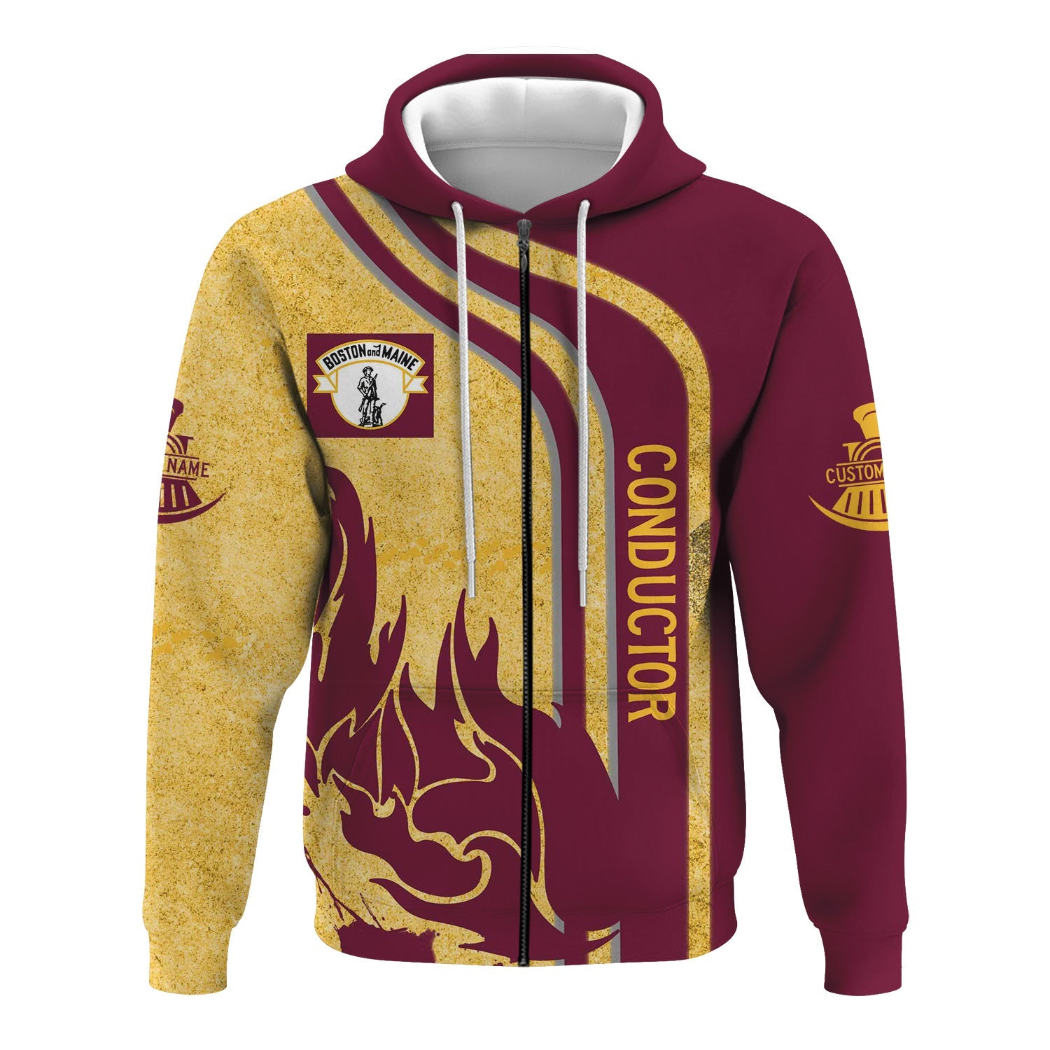 Railspirit Personalized Boston and Maine Railroad Hoodie Flame Design with Custom Job Position Train Zip Up Hoodie