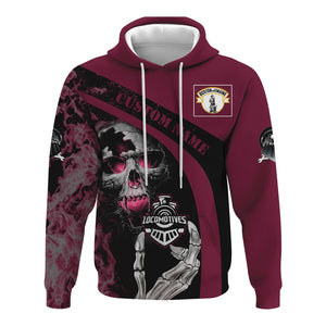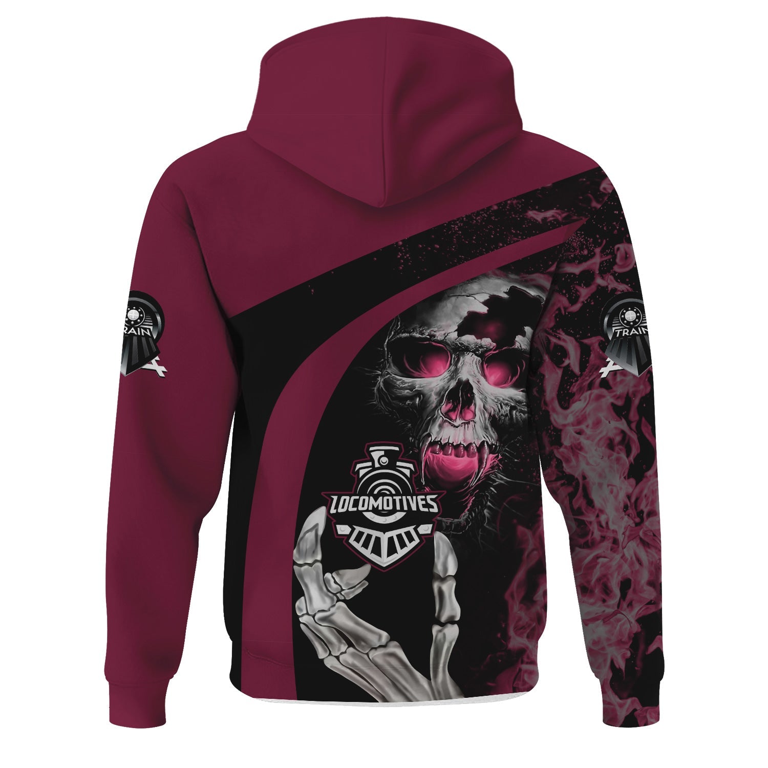 Railspirit Personalized Boston and Maine Railroad Hoodie Flame Skull Design Train Zip Up Hoodie for Locomotive Fans