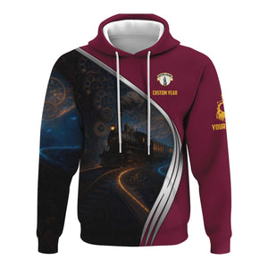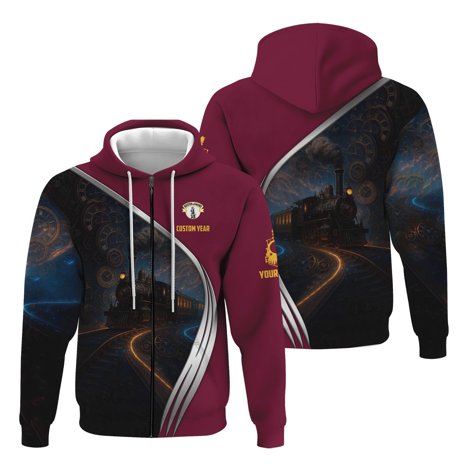 Railspirit Personalized Boston and Maine Railroad Hoodie Steampunk Locomotive with Custom Year Train Zip Up Hoodie