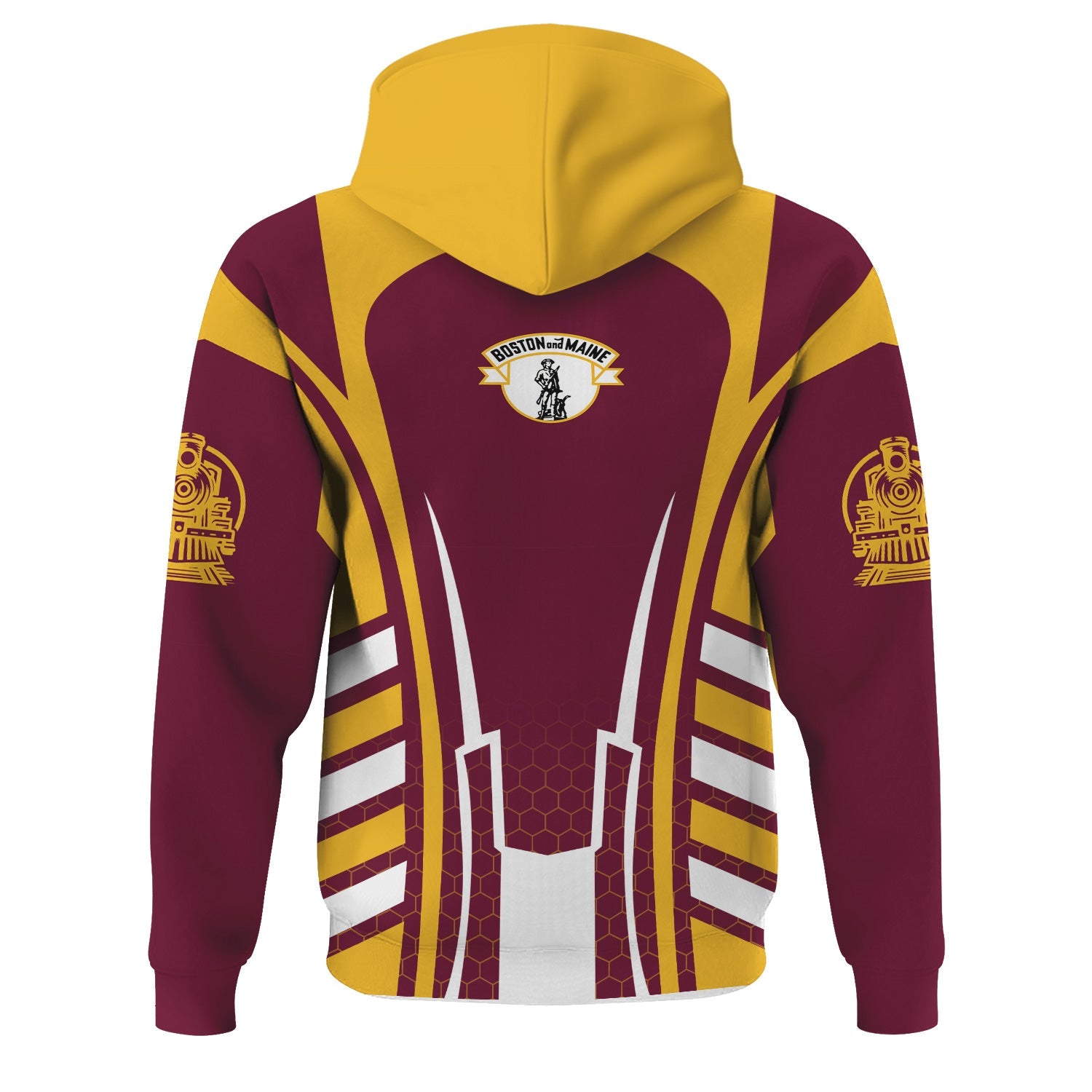 Railspirit Personalized Boston and Maine Railroad Hoodie Striped Railroad Style Train Zip Up Hoodie All Over Print