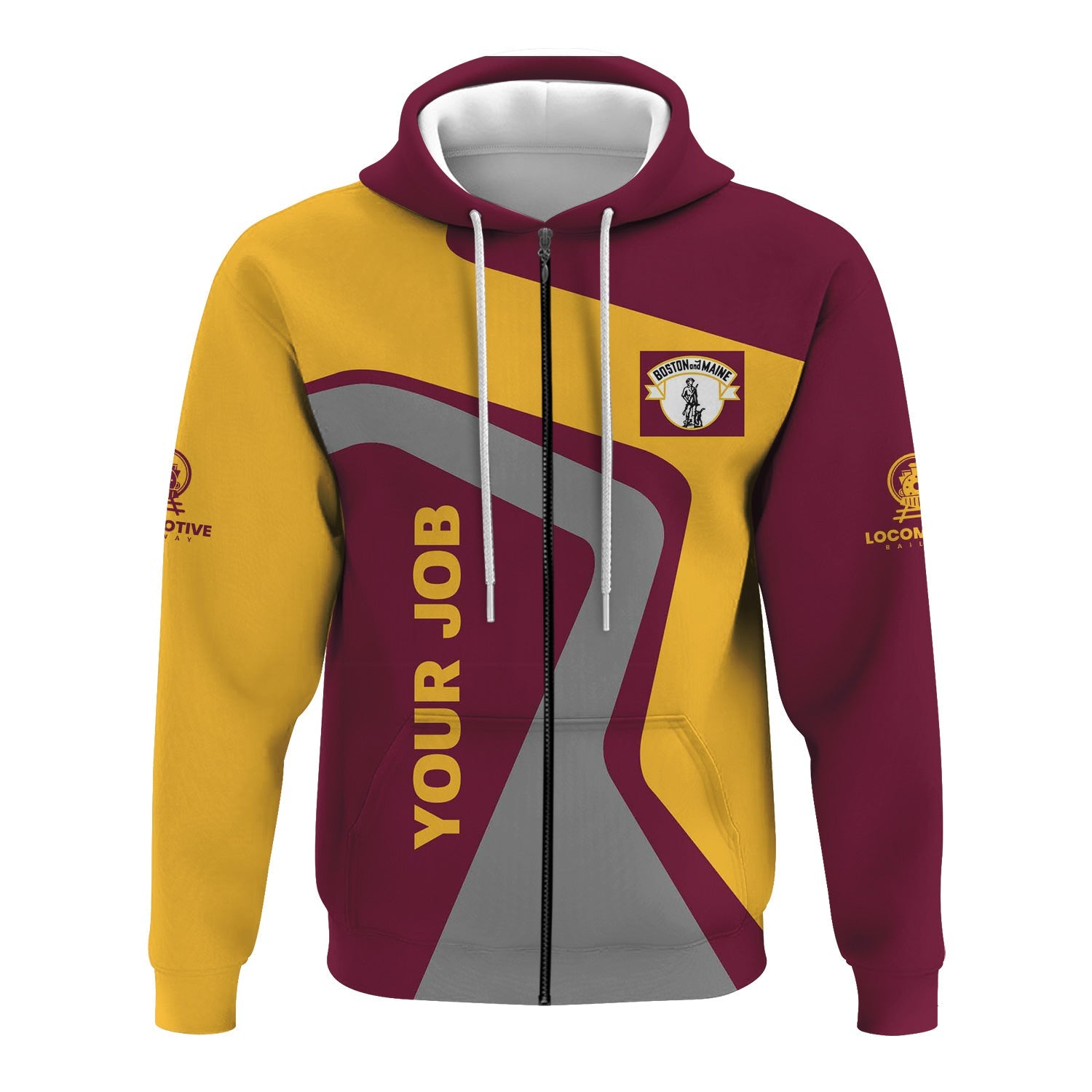 Railspirit Personalized Boston and Maine Railroad Hoodie Unique Design with Custom Job Position Train Zip Up Hoodie