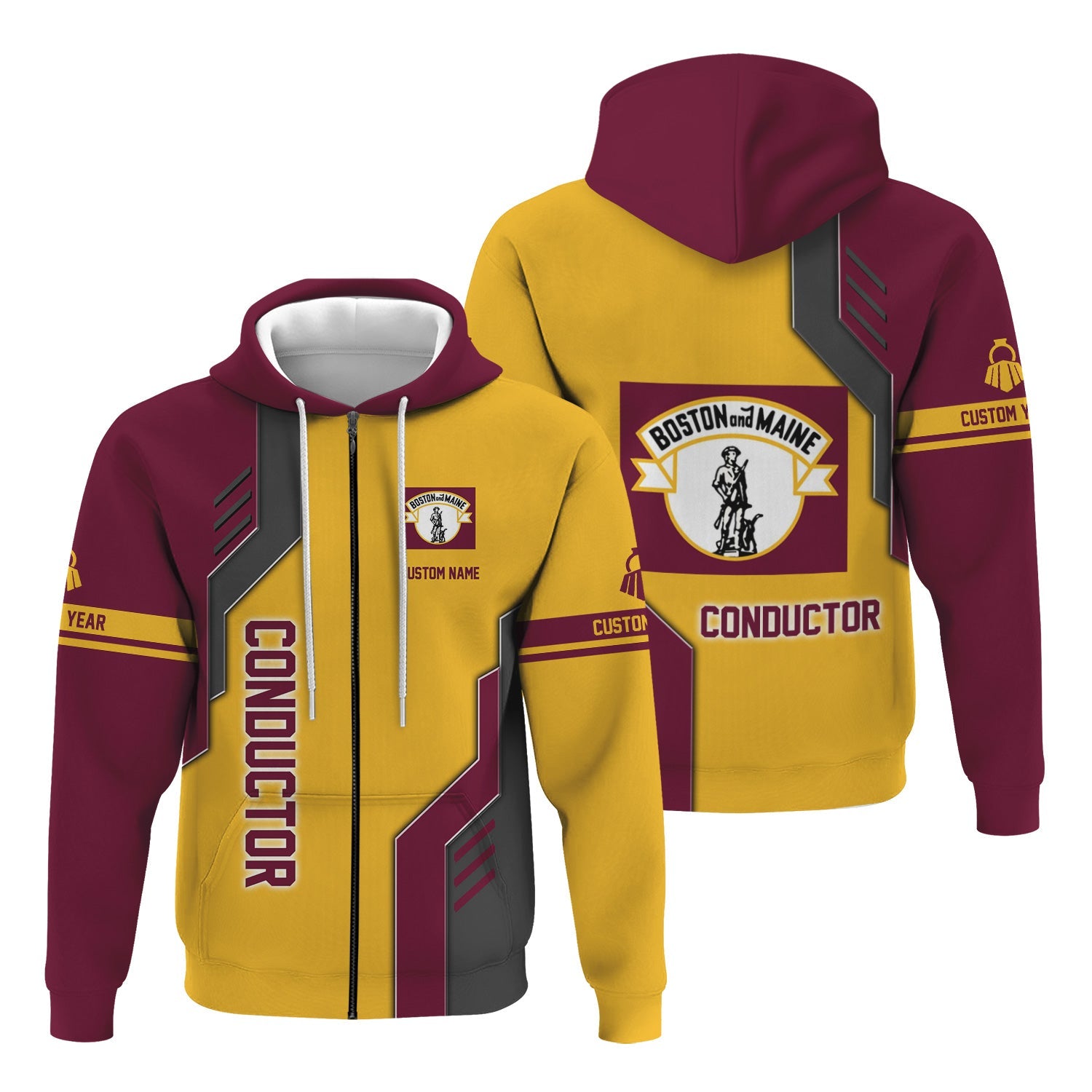 Railspirit Personalized Boston and Maine Railroad Hoodie Unique Railway Style with Custom Job Train Zip Up Hoodie