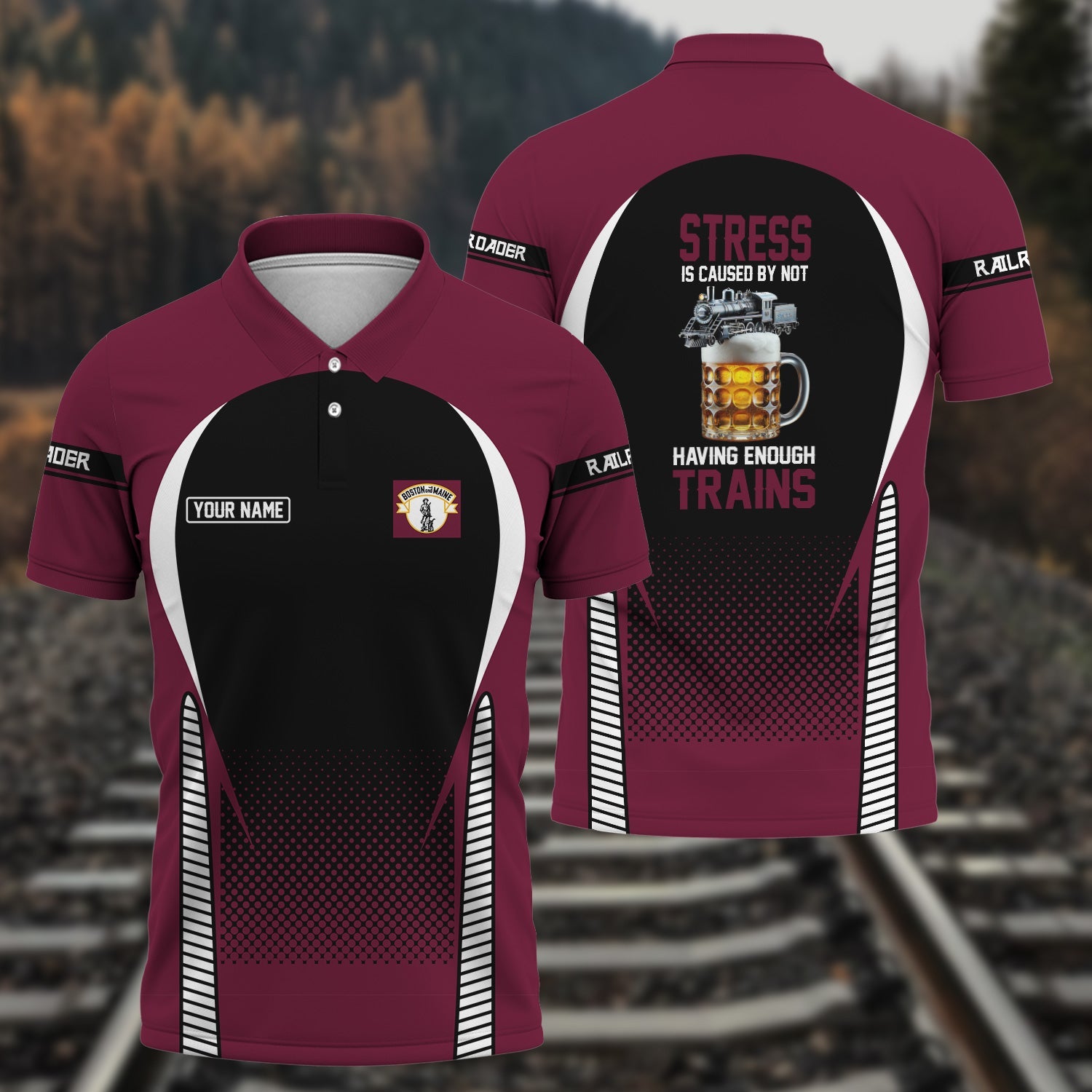 Railspirit Personalized Boston and Maine Railroad Polo Shirt Stress Is Caused By Not Having Enough Trains Shirt All Over Print