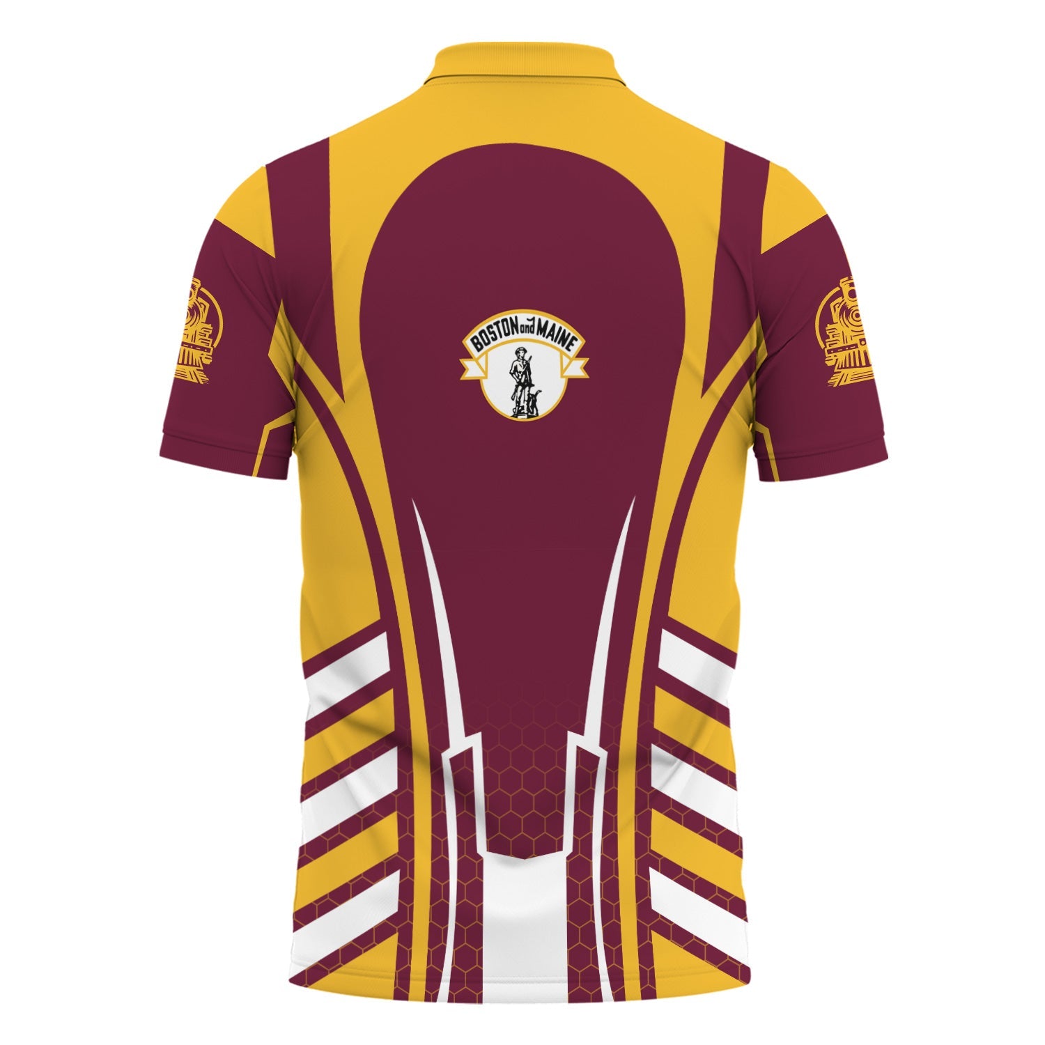 Railspirit Personalized Boston and Maine Railroad Polo Shirt Striped Railroad Style Train Shirt All Over Print