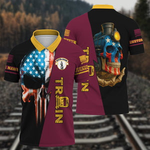 Railspirit Personalized Boston and Maine Railroad Polo Shirt Train Skull American Flag Shirt All Over Print