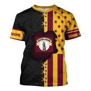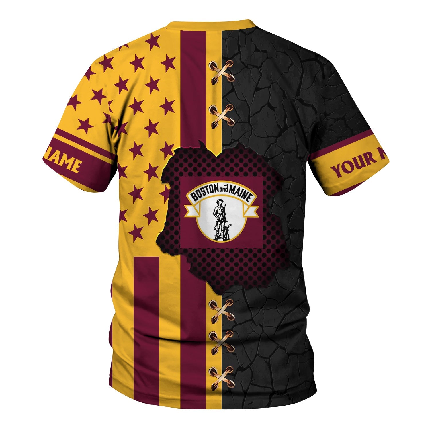 Railspirit Personalized Boston and Maine Railroad T-Shirt American Flag with Crack Effect Train Shirt