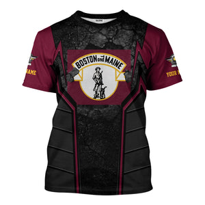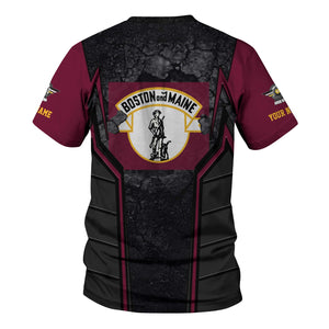 Railspirit Personalized Boston and Maine Railroad T-Shirt Cracked Metal Design Train Shirt for Rail Enthusiasts