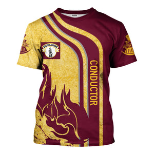 Railspirit Personalized Boston and Maine Railroad T-Shirt Flame Design with Custom Job Position Train Shirt